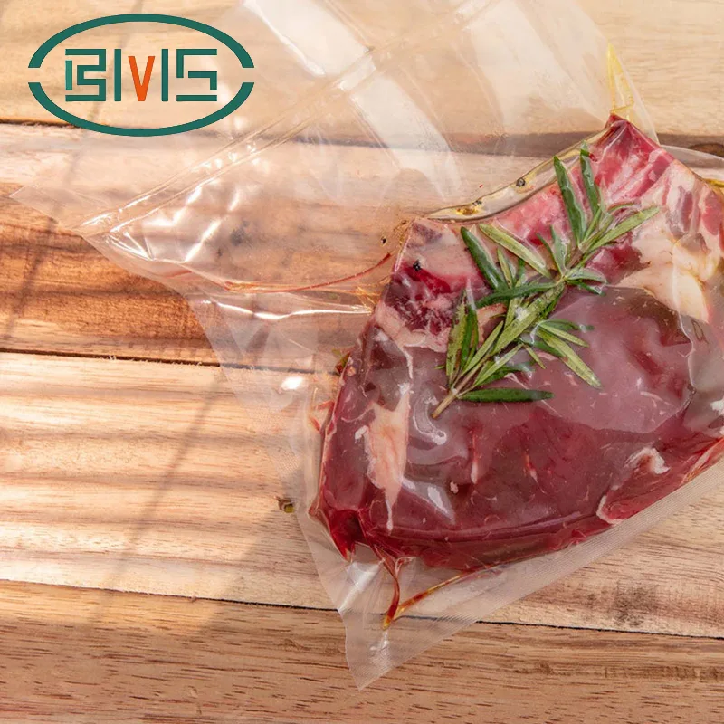 Bimashi produz sacos de vácuo para embalagens de carne na China em uma ampla gama de tamanhos e espessuras. Os sacos de vácuo padrão consistem em construção de PA/PE, onde a AF é usada para resistência à punção e PE para vedação. A categoria de alta barreira envolve o uso de mais camadas e se concentra na prevenção da penetração de oxigênio, protegendo assim a vida útil.